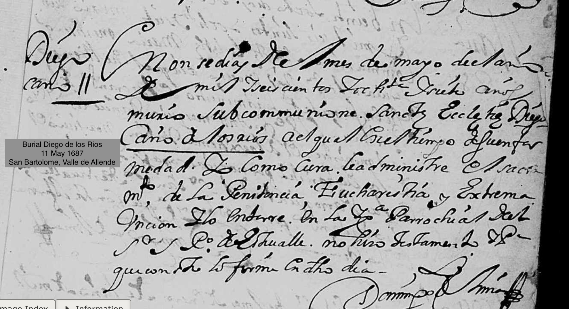 Diego CANO de los RIOS Baptism: July 29, 1628 — El Sagrario, Toluca de Lerdo, Mexico, Mexico Burial: May 11, 1687 — San Bartolome, Valle De Allende, Chihuahua, Mexico |