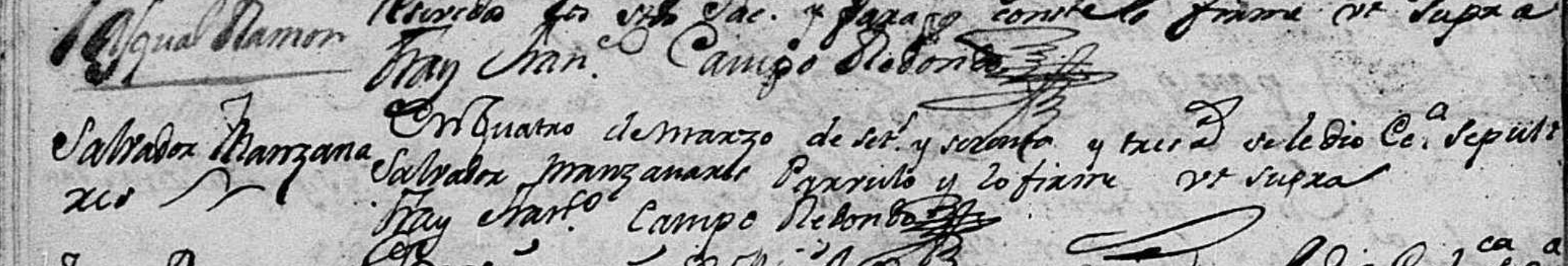 Burial of a brother | Salvador Antonio MANZANARES March 4, 1763 (Age 18 years) Note: Salvador died as a 3 year old. As was common, his parents named another son Salvador a few years later.