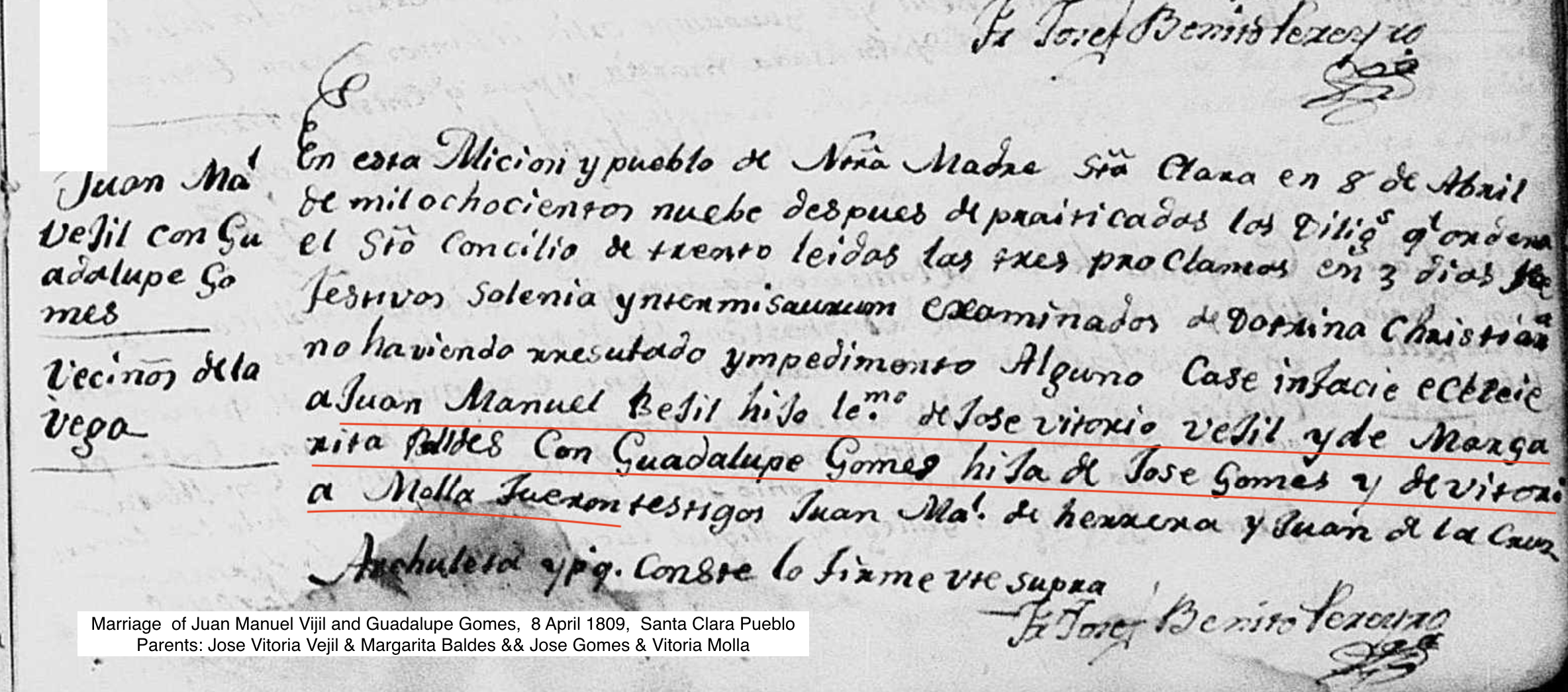 Marriage: April 8, 1809 — Santa Clara, Rio Arriba, New Mexico |