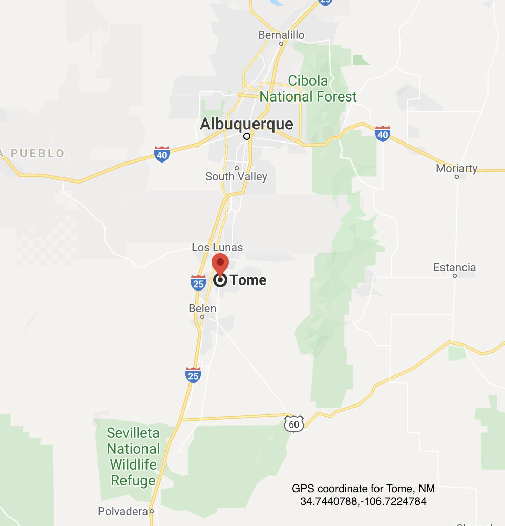 | Residence | "Sometime in the 1650s, one of the sons, Tomé el Mozo, moved south with his family and established a prosperous estancia four leagues below the Isleta Pueblo church, in the vicinity of today’s village of Tomé. His father, Tomé el Viejo (the elder), died during 1660 or the early months of 1661, and his mother soon afterward. Tomé Domínguez de Mendoza, and his wife, Catalina López Mederos, had five sons, Tomé III, Juan, Diego, Francisco, and Antonio, along with one daughter, Juana. While building his flourishing estate in the Isleta jurisdiction, Tomé served in various public offices, both civil and military. Among his appointments, on at least two occasions, was that of acting governor." [Pg 231] "A well established estancia owner by 1659, his house and property were located along the Rio del Norte just four leagues [14 miles] south of the convent of Isleta Pueblo, and his property was considered the southern limit of the jurisdiction of Isleta." |