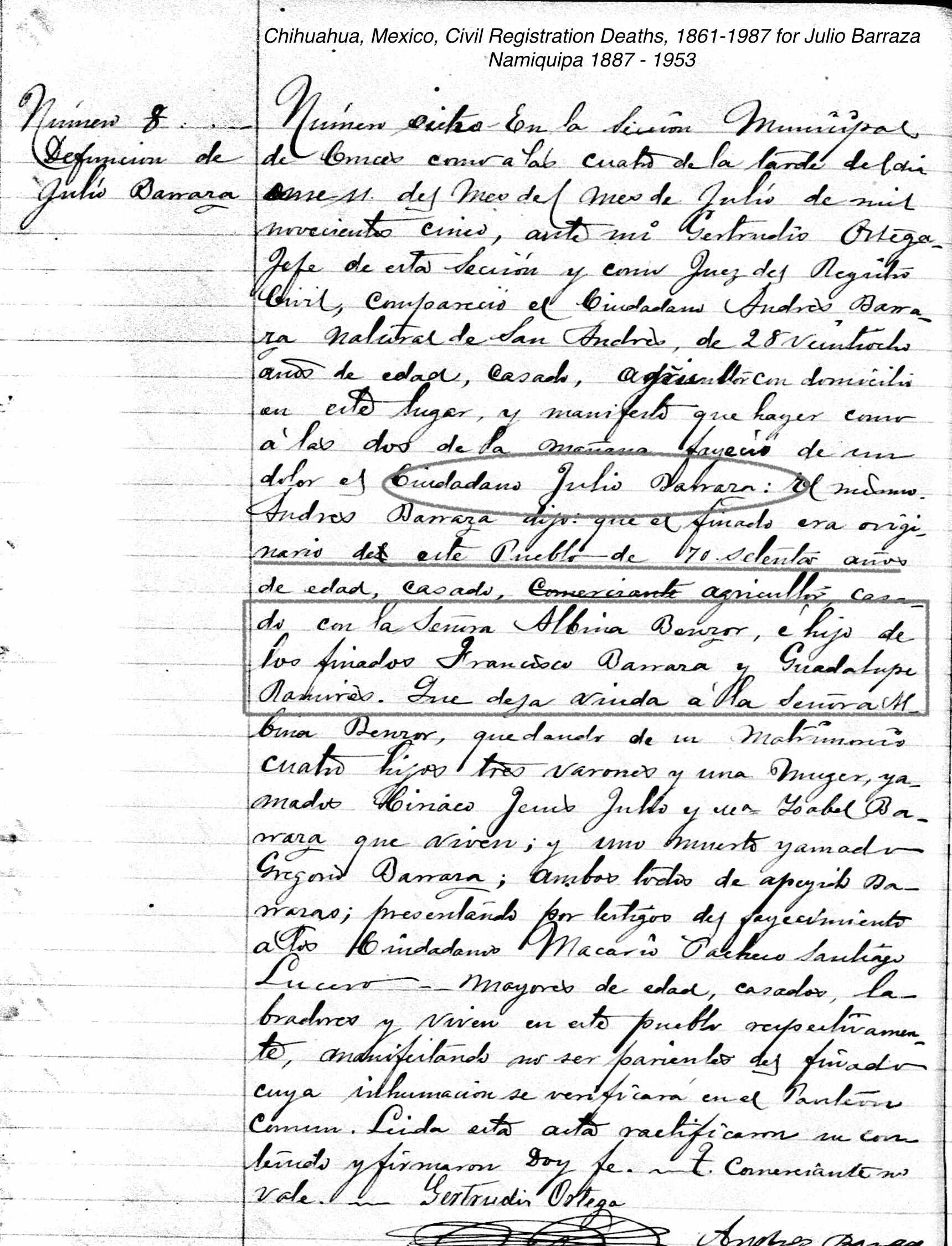 Julio BARRAZA Birth: 1869 34 37 — San Buenaventura, Chihuahua, Mexico Death: November 9, 1947 — Namiquipa, Chihuahua, Mexico |