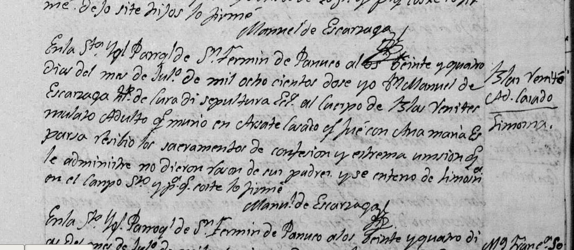 Burial of a husband | Blas BENITES July 24, 1812 (Age 69 years) |