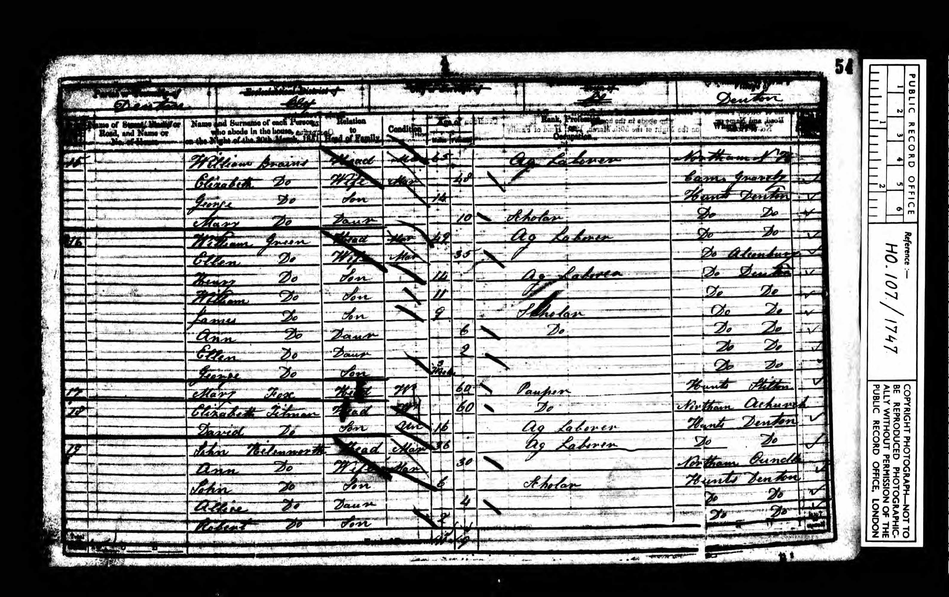 Census | 1851 (Age 56 years) Age: Denton, Huntingdonshire, England |