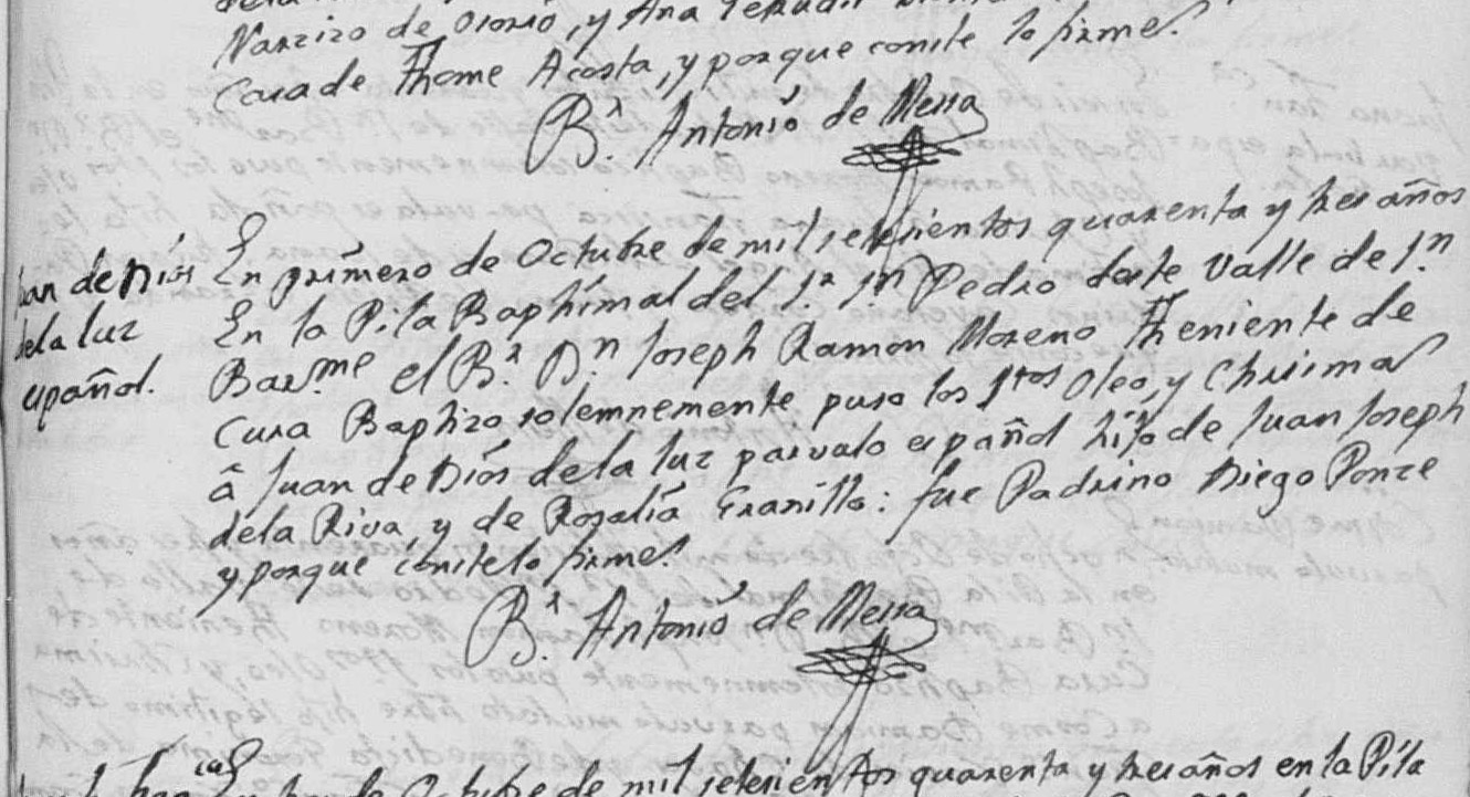 Baptism of a brother | Juan Baptista de la Luz RIBAS January 11, 1746 (Age 7 years) |