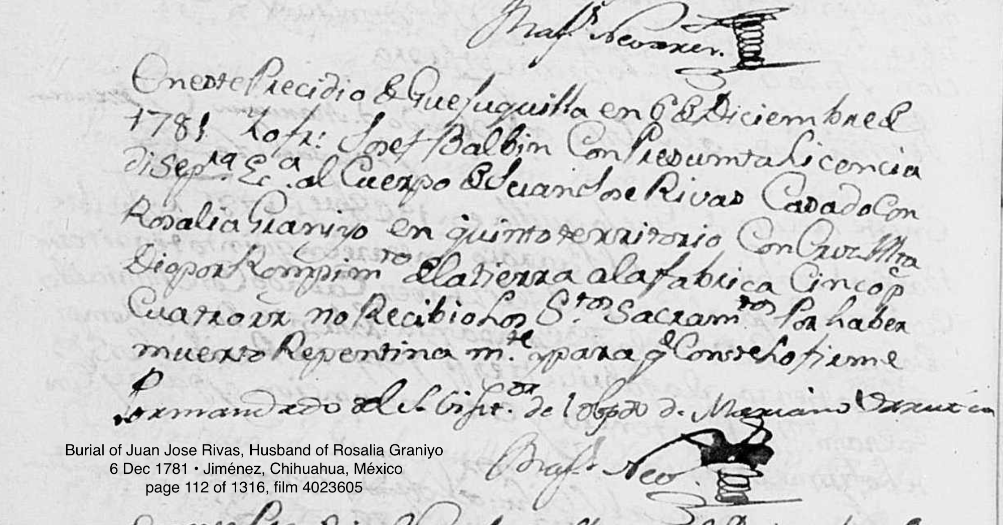 Juan Jose RIBAS Birth: about 1707 Burial: December 6, 1781 — Guajoquilla (Jimenez, Chihuahuua) |