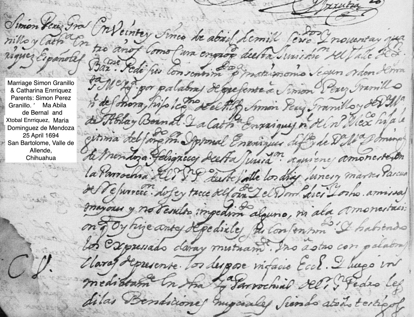Marriage of a child | Simon PEREZ GRANILLO II — Catharina ENRRIQUES — View this family April 25, 1694 |