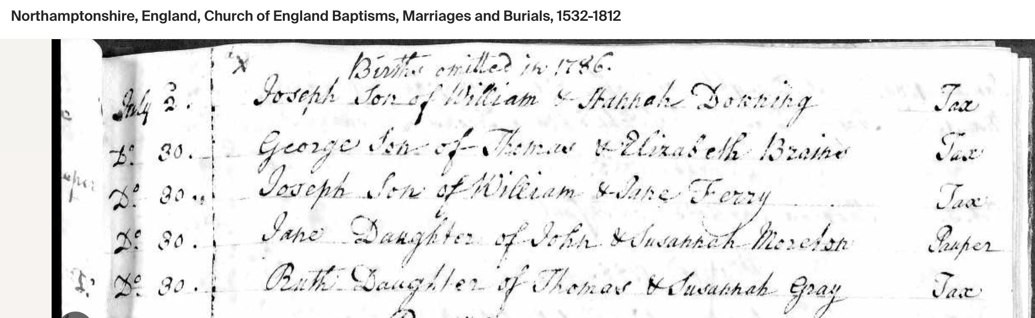 Death of a sister | Jane BRAINES December 1785 (Age 7 years) |