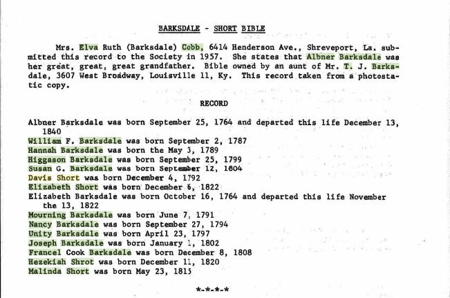 Unity BARKSDALE Birth: April 23, 1797 |