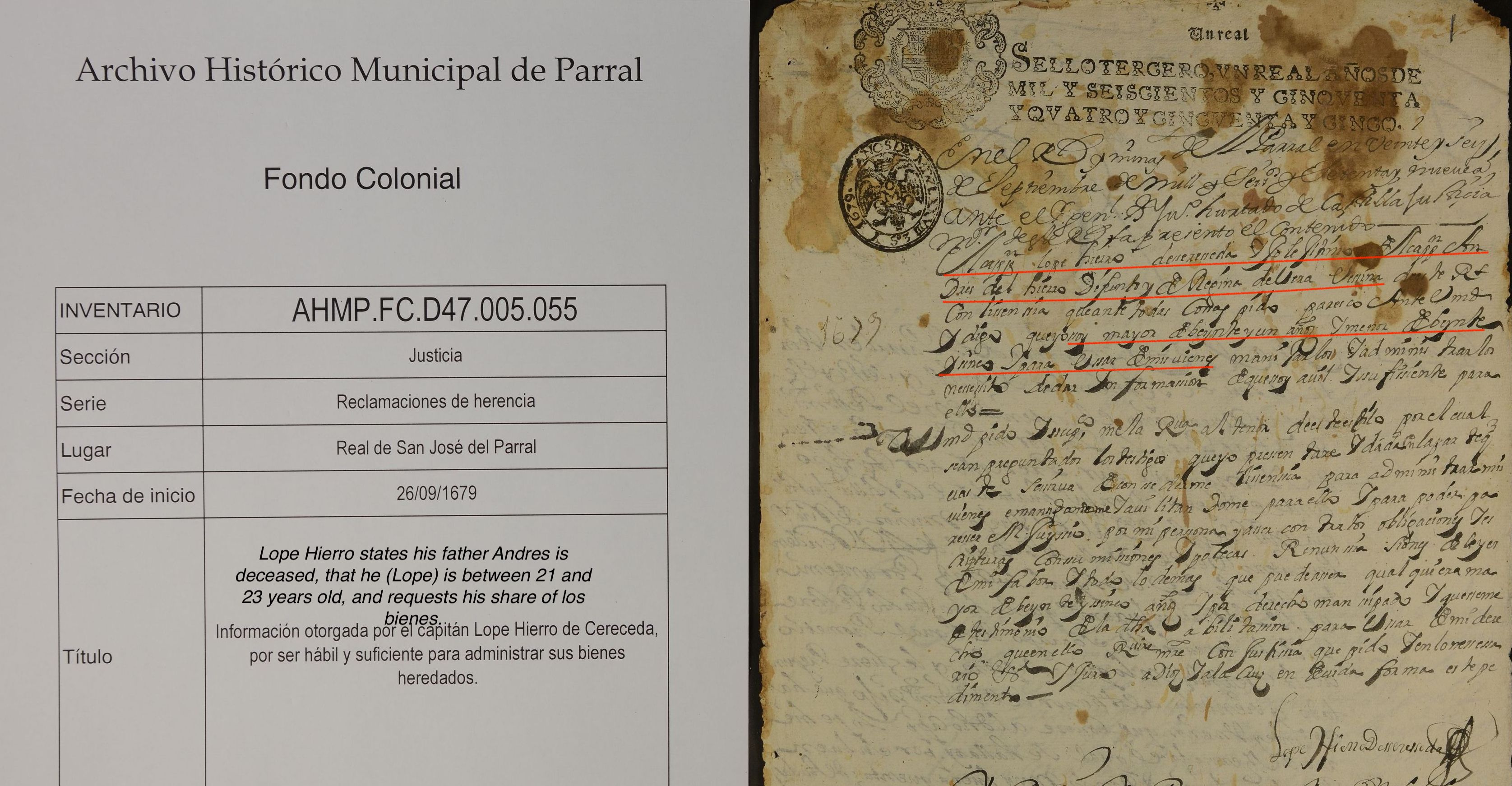 Death of a father | Andres del HIERRO 1675 Note: In August of 1675 Regina de Vera requests permission to lease her late husband Andres del Hierro's h… In 1679 Lope del Hierro Stated His Father Was Deceased Note: In a document found in the Fondos de Parral, Lope del Hierro stated his father Andres del Hierro y Sereceda was deceased, that Lope was 21-23 years of age, and Lope requested his inheritance.