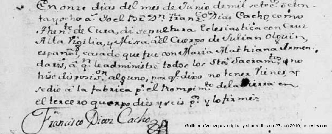 Burial of a maternal grandfather | Julian de OLGUIN June 11, 1778 (Age 14 months) |