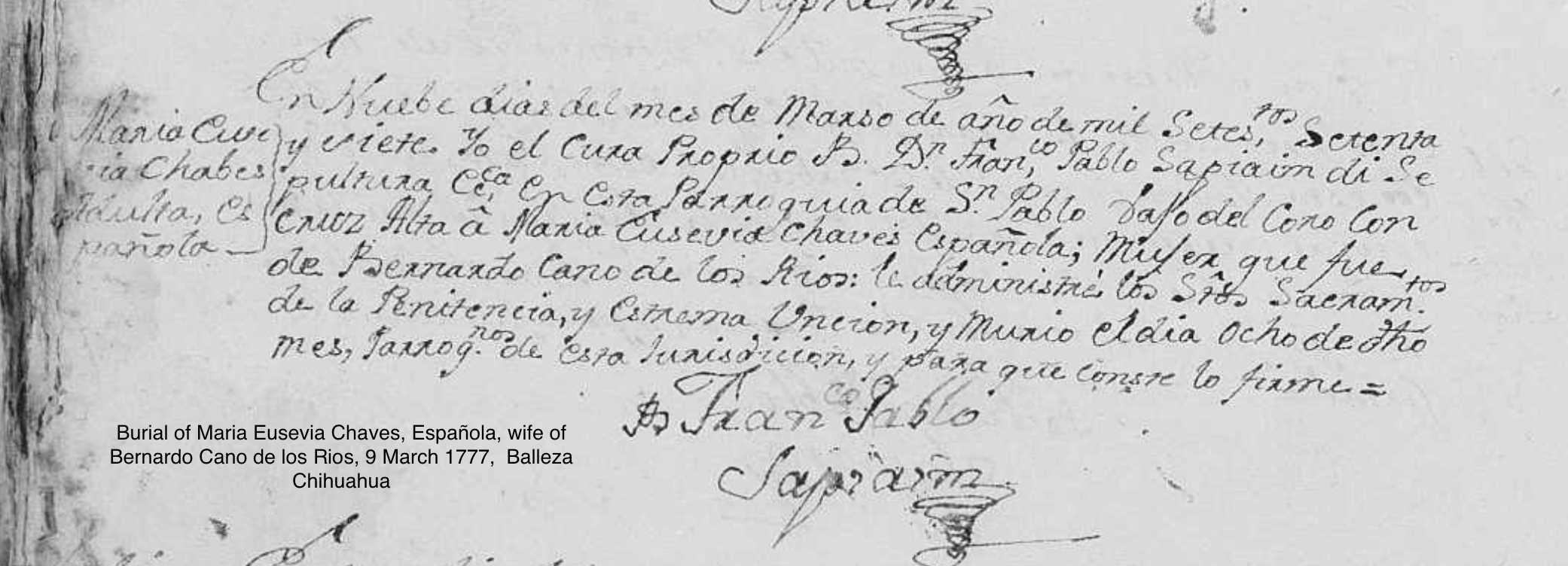 Maria Eusevia de CHAVES Burial: March 9, 1777 — San Pablo, Balleza, Chihuahua, Mexico |