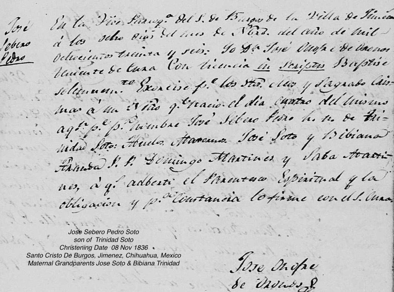 Baptism of Jose Severo Pedro Soto, Son of Trinidad Soto