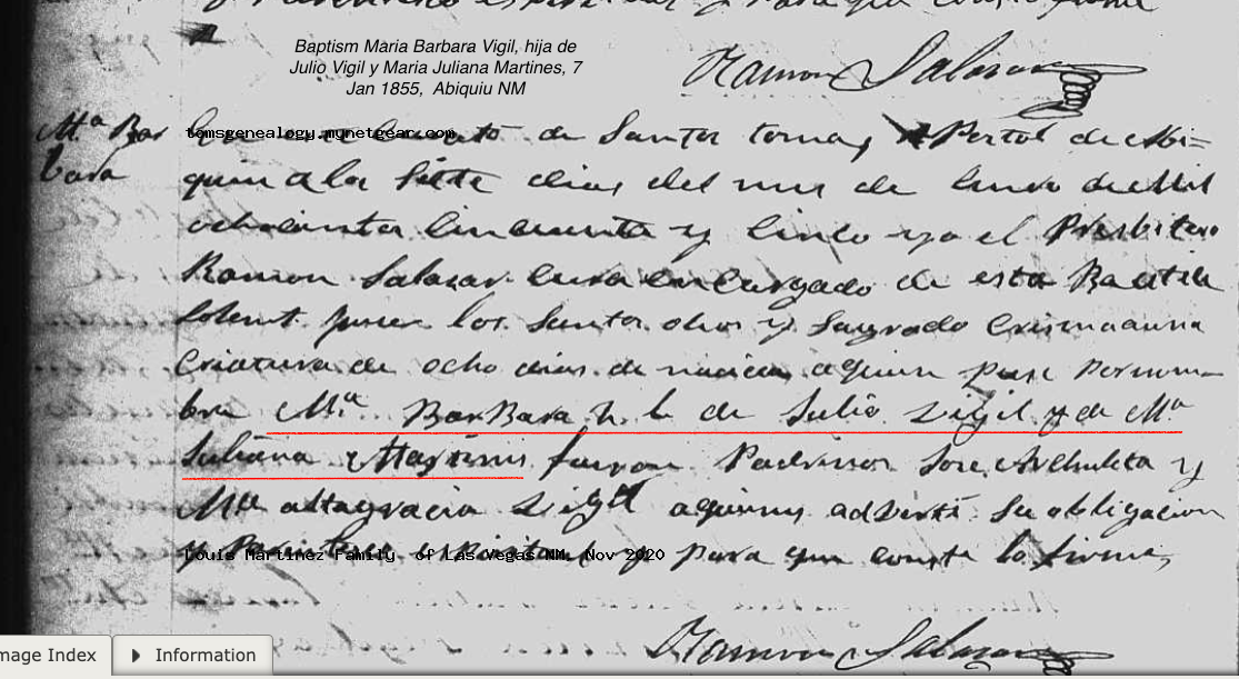 | Barbara VIGIL | January 7, 1855 | 171 | Santo Tomás Apóstol, Abiquiu, Rio Arriba, New Mexico | 0 | April 8, 2019 - 5:00:00 a.m. | F | YES | YES | ||||||||
