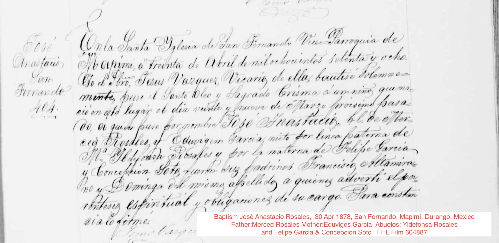 Baptism Record of Anastacio Rosales, San Fernando, 1878