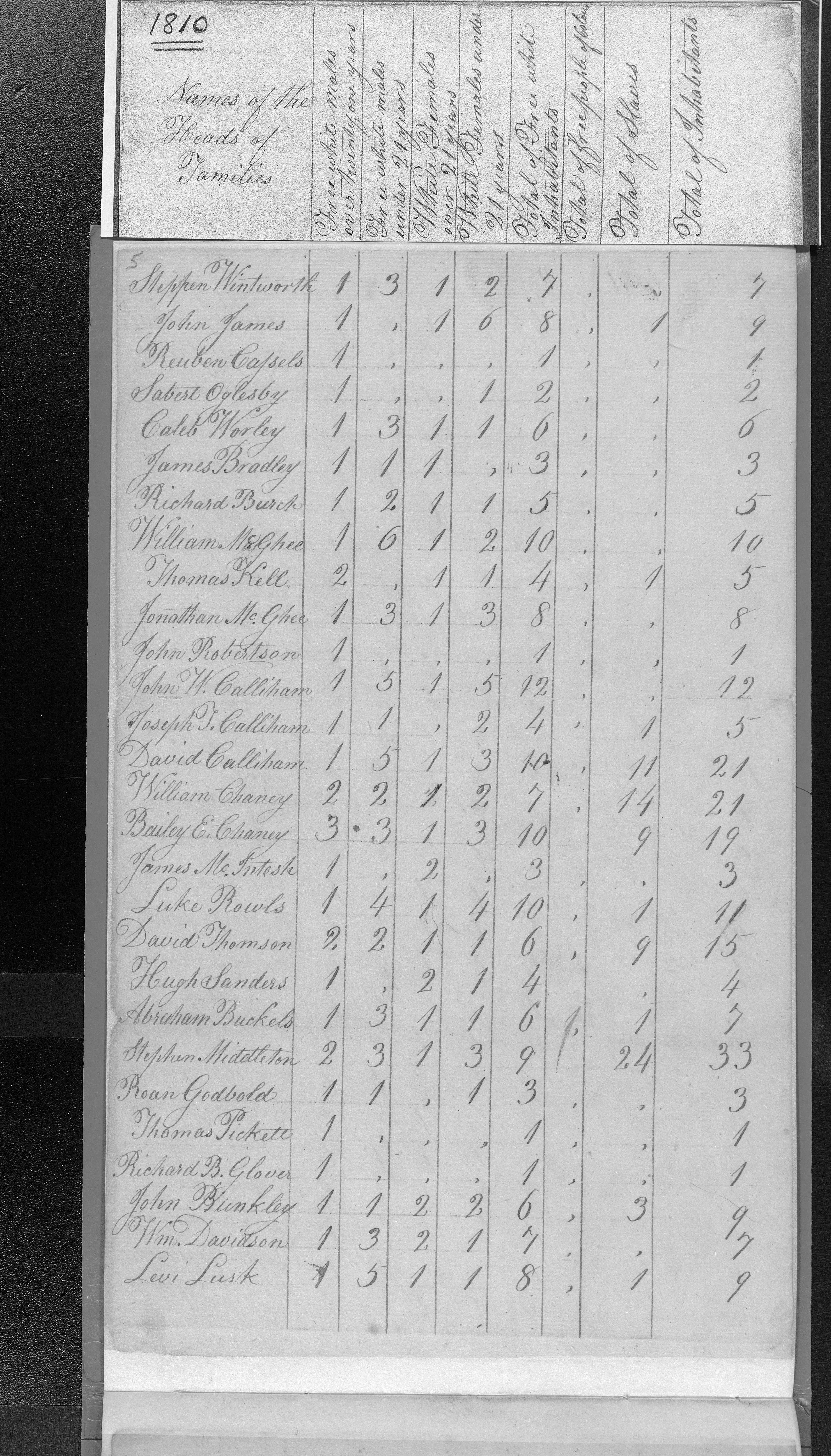 Jon Magee, Richard Burch, Will Magee and James Families in 1810 living in Franklin Co MS