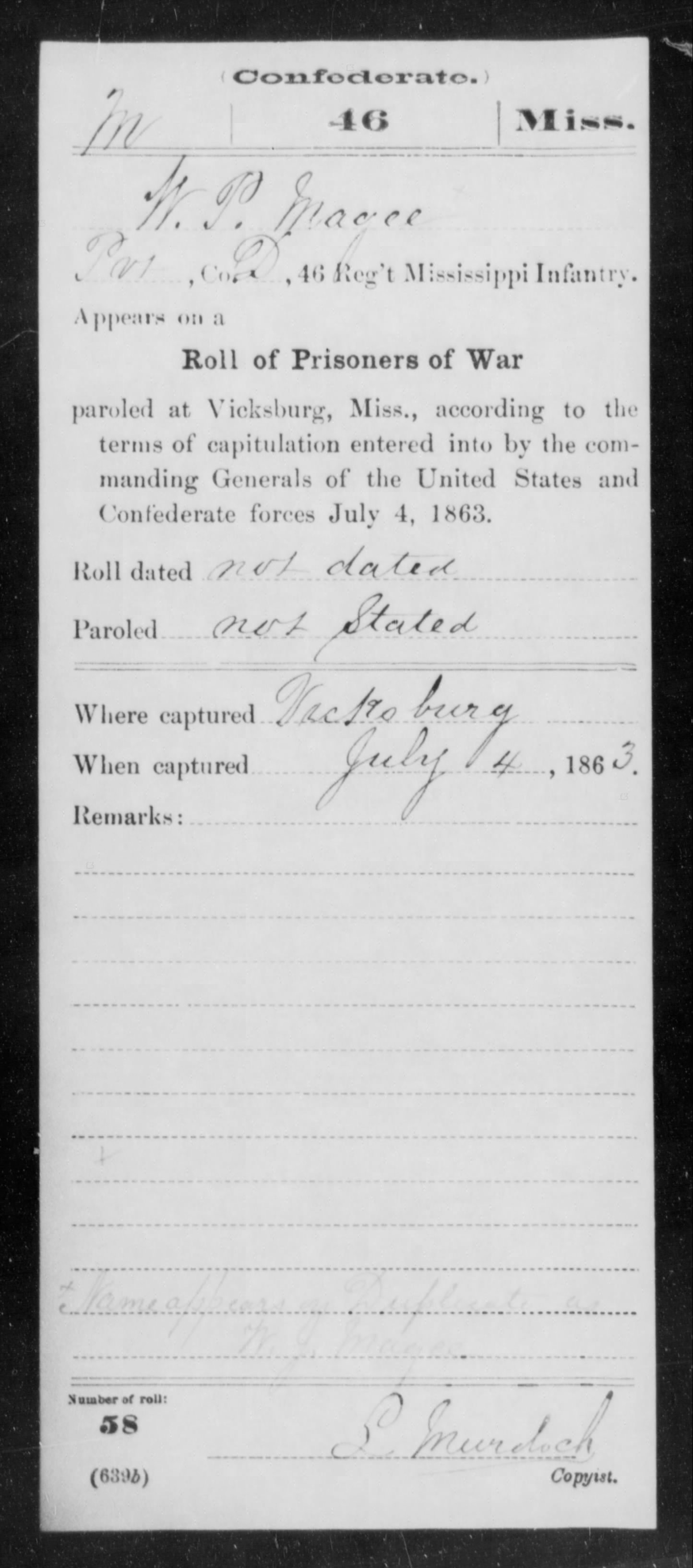 | William Joseph MAGEE William James MAGEE | 1836 | 190 | Mississippi | 11 | October 7, 1887 | 138 | 51 | MS | April 6, 2021 - 8:36:52 p.m. | M | YES | YES | ||||