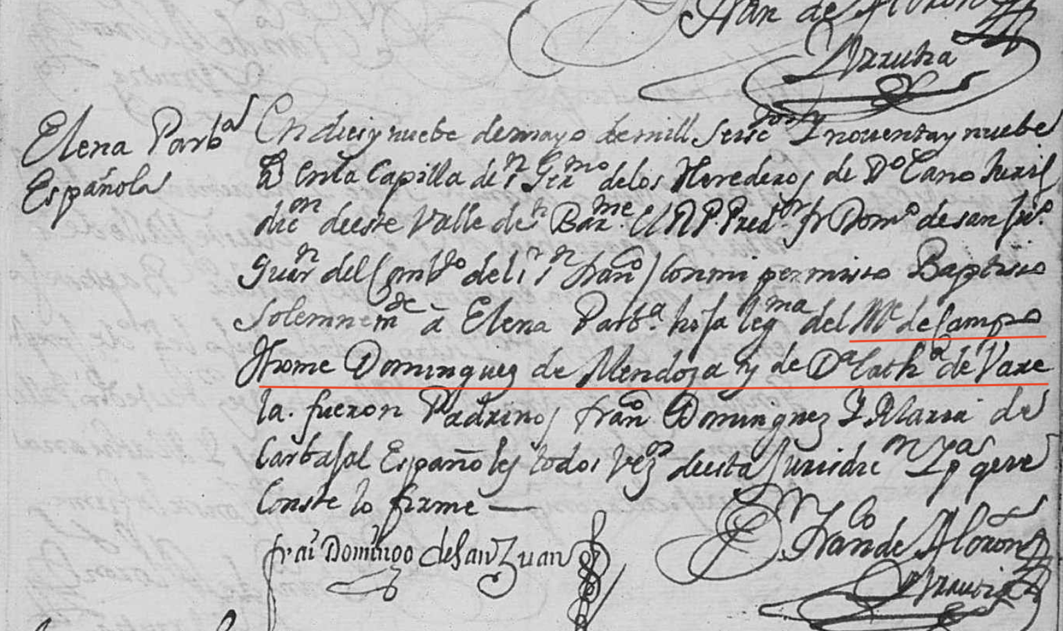 Baptism of Elena, Daughter of Maestre de Campo Tomé Domínguez de Mendoza