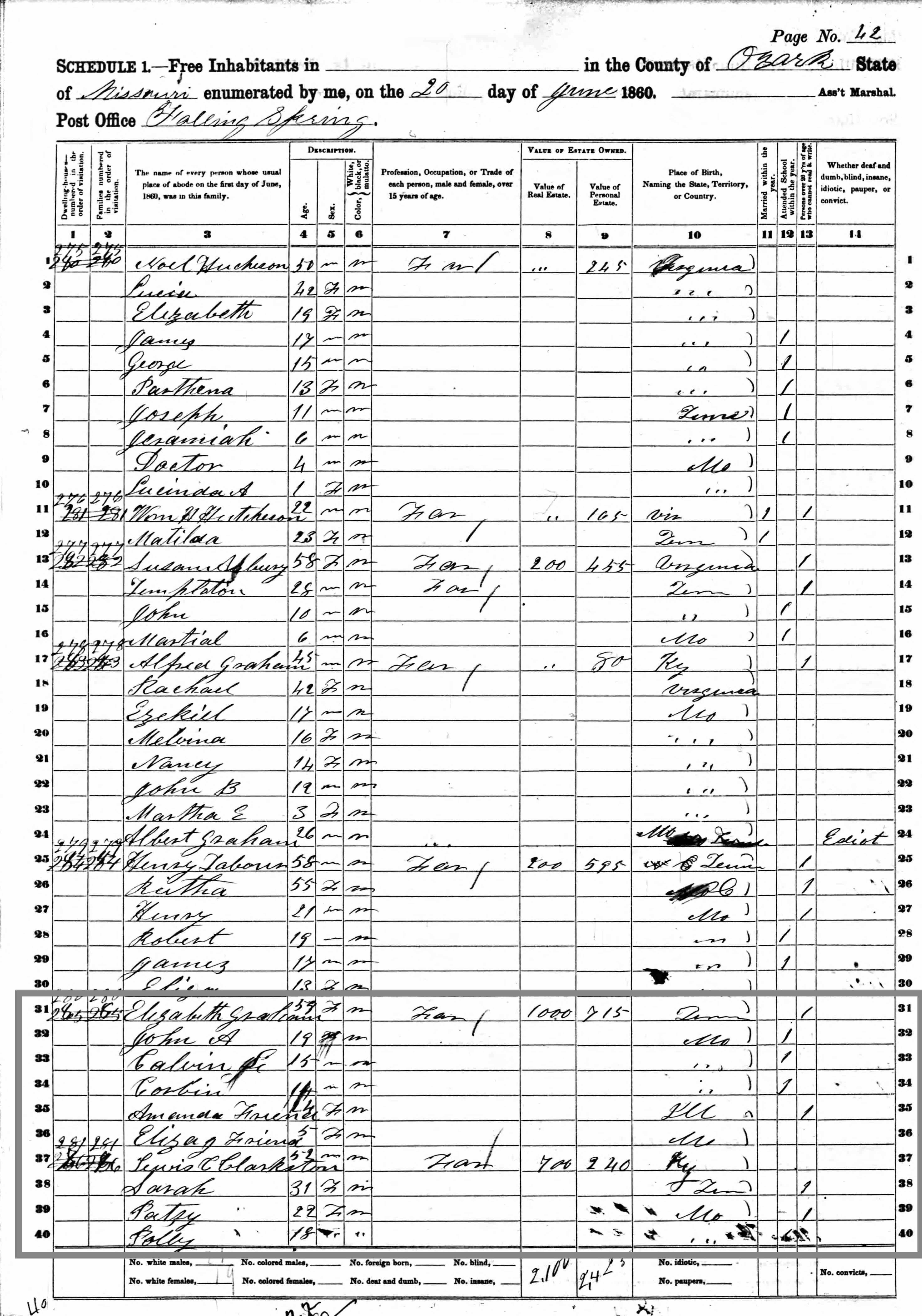 1860 Census of Clarkston & Friend Families in Falling Springs MO